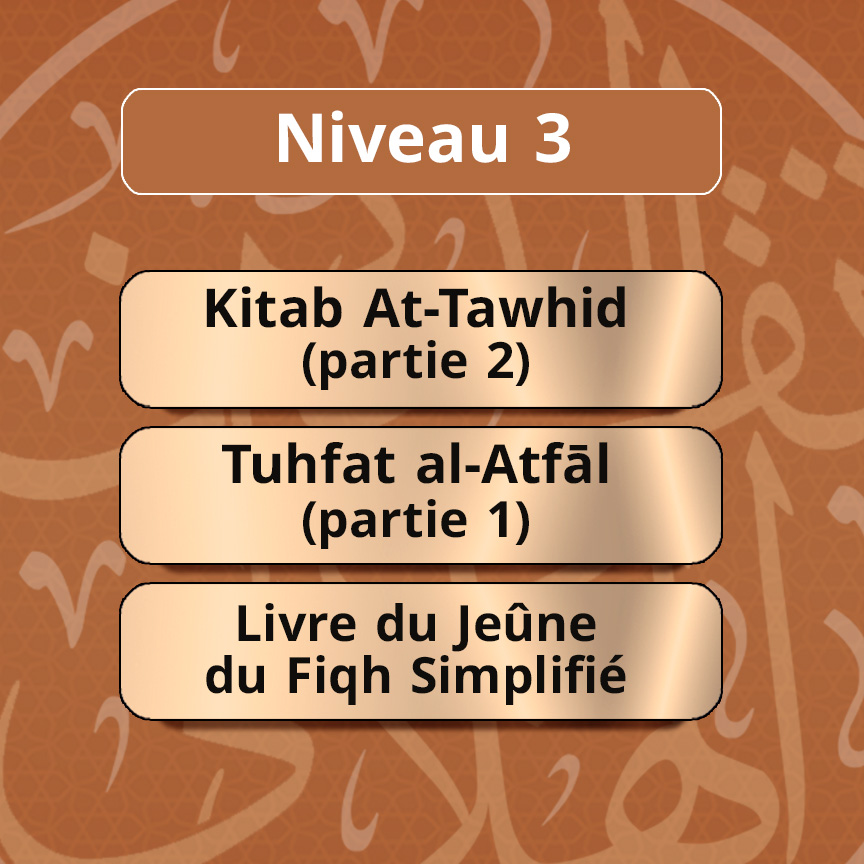 Choisissez le livre que vous souhaitez étudier parmi une sélection variée d’ouvrages dans les domaines du fiqh, de la croyance (‘Aqida), de l’exégèse (tafsir), et d’autres disciplines.